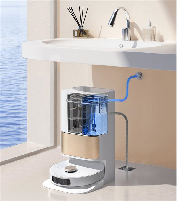 配备7+1全能基站,拥有自动洗拖布、自动集尘、拖布热风烘干、主机自动补水、自动添加清洁液(S10 Plus为选配,S10 Pro Plus为标配)、银离子除菌、基站自清洁、自动上下水(需另外购买配件安装)等功能。