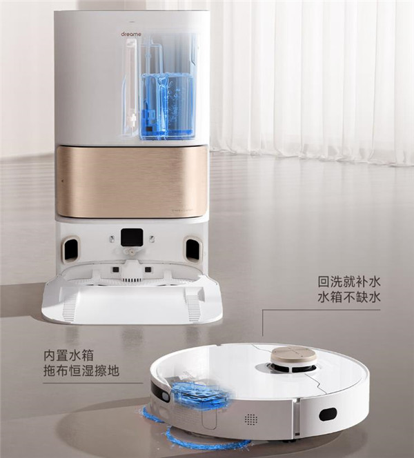 回基站洗拖布的时候,会自动抬升拖布,不会弄脏拖干净了的地面,清水箱里有银离子缓释颗粒,可除菌99.9%,增添一份安心。