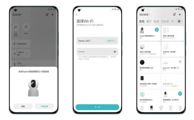 Xiaomi 智能摄像机 2 AI 增强版支持 2.4GHz 和 5GHz 双频 Wi-Fi 连接,减少信号干扰,连接更稳定,传输速度更快,使用时需配合米家APP一起使用,下载最新版米家APP,登录账号后,点击右上角+号, 按照提示添加设备。