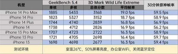根据测试,iPhone 14系列上的这颗A15相较于iPhone 13 Pro系列上的这颗略强一些,分析原因很大程度上与此次iPhone 14系列中加入的石墨烯薄膜有关(爷青结,苹果竟然堆散热了)。
