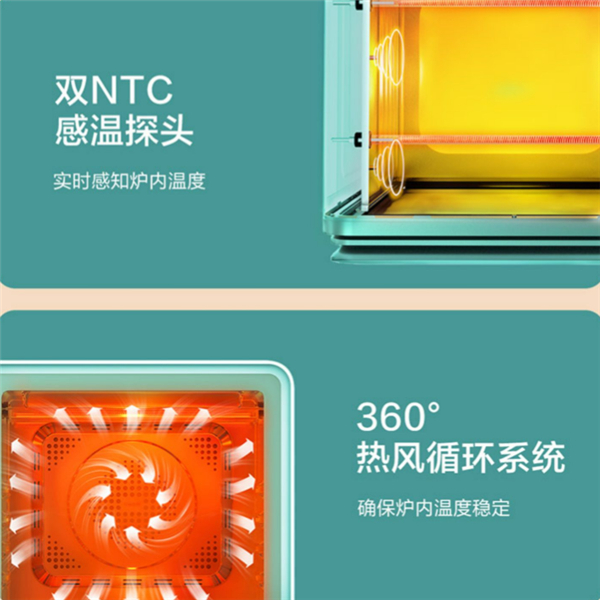 无论是上管还是下管,温度都是可以自定义调节的,温度调节范围在30~230℃之间,以1℃为单位进行精准调节,时间则以分钟为单位设定,完全能够满足烘焙高手的苛刻要求。同时,TOKIT智能电烤箱具备了360°热风循环系统,对食材进行均匀加热。