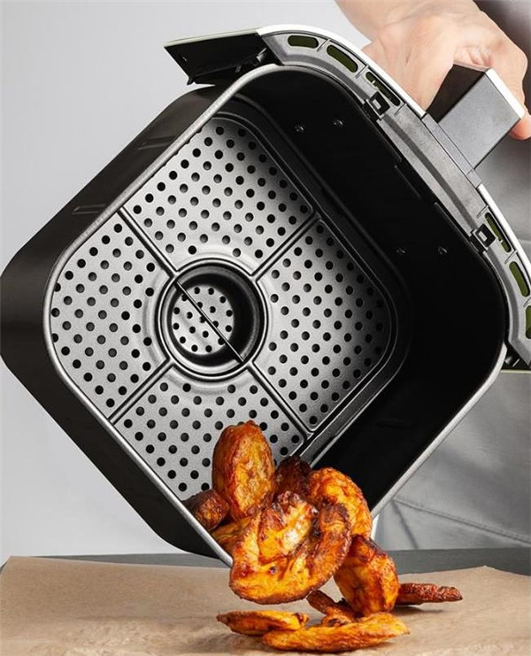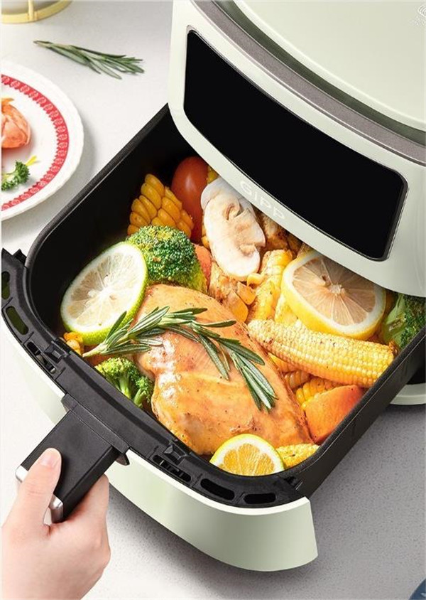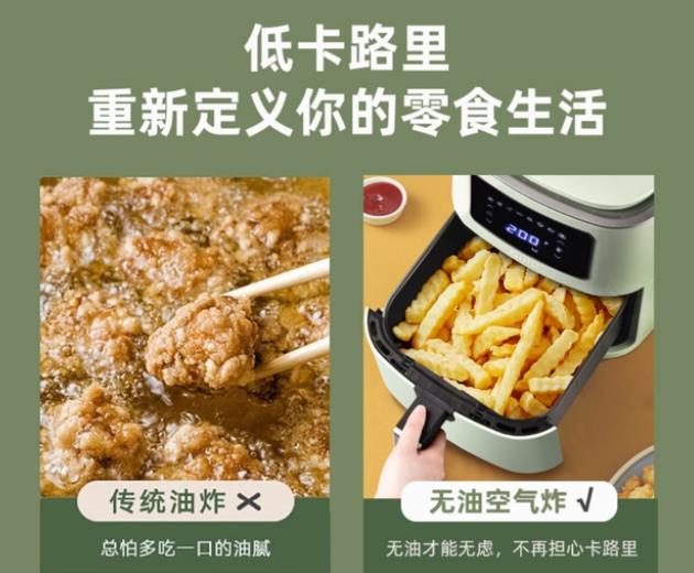 这款大魔方空气炸锅告别了传统的普通油炸食物油腻、油脂附着的特点。借由气炸锅上方的加热器产生高温热风,让热空气在食物周遭循环,把食物本身的油脂逼出,产生“油炸”的效果,但是却并非油炸,从而使饮食更低脂,更健康。让年轻人不再有“肥胖”焦虑,让爱美的人也能放肆吃,享受美味的炸物。