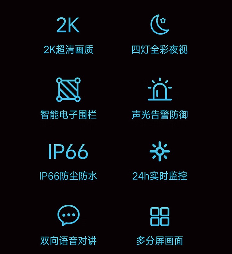 另外在品质方面,它同样出众。小米为其采用了IP66级防尘防水工艺,让它的摄像机可支持-30°C-60°C的工作温度;此外,它还内置大功率喇叭和高保真麦克风,使其拥有7米远场拾音,让它可与室外人员实时语音对讲,用户可以通过米家App同时查看多台摄像机画面,更是支持4路画面同看;最后,它还外置咯Wi-Fi天线,并内置了米家安全芯片+AES128位加密算法,小米为其采用H.265视频编码技术,让它支持本地和云端存储。
