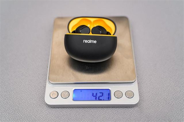 经实测,真我Buds T100整体重量约为42.1克,加上充电盒整体小巧玲珑,日常携带使用都很轻松。