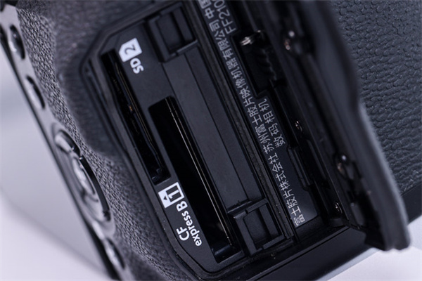 富士X-H2S依然具有双卡插槽,支持CFexpress Type B卡和SD卡,可使用具有高速数据处理性能的CFexpress Type B卡,可以更充分的发挥出X-H2S快速连拍和视频性能的潜力