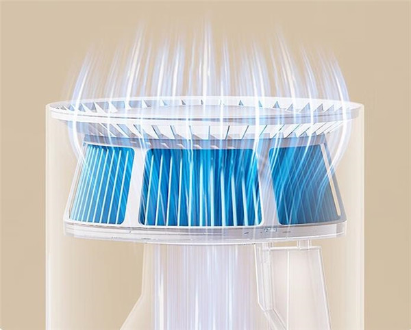 它采用塔式结构滤芯和滴灌式水循环系统,配合水泵和风扇混合动力,提高加湿效率,最大挡加湿量可达330mL/h。搭载3L大容量水箱,快速加湿,全屋循环。