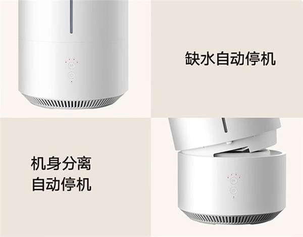 整机采用可拆分体式设计,清洁保养更方便安全,主机底座内置风扇,内置多重安全保护,缺水自动停机,机身分离自动停机,加湿更放心。