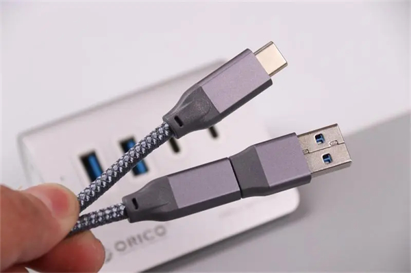 除了这款ORICO奥睿科USB 3.2Gen2分线器外,还为用户附带了一条可切换插头的数据线,可以在USB和Type-C接口轻松切换,可以满足用户在A口或者C口等场景下使用。这跟数据线的材质还是非常扎实的,外层是尼龙编织线皮,而在插头跟线材连接的地方还做了加固设计,插头部分均是金属材质,坚固耐用。