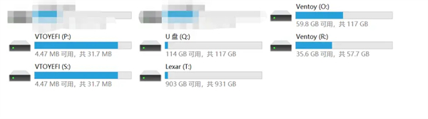 简单说完它的细节,我们再来看下它实际的读写和供电能力。平时需要分类存取的数据比较多,U盘也买了不少,将四个插口全部插满不在话下,就看它能不能带的起来了。2个128GB容量的U盘,一个64GB容量U盘,还有一个1TB的固体移动硬盘,全部插满竟然全部识别,而且在读写测试中还非常稳定。