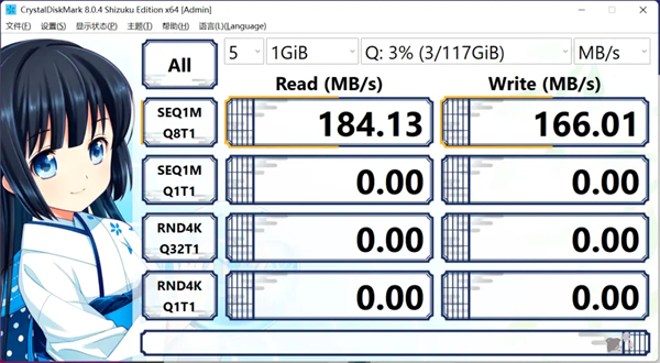 这是U盘读写测试,笔者选用的是aigo U358这款U盘,这是一款USB 3.2规格的高速U盘,在读写测试中可以最大体现这款ORICO奥睿科分线器的性能,实测成绩令人满意,读取速度为:184MB/s,写入速度为:166MB/s,超过官方宣称的读取速度180MB/s,达到了慢速,由此可见这款分线器的性能也是很强的。