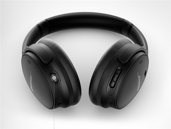 在降噪设计方面,QuietComfort 45包含两部分,一是内部的微型麦克风实时监控噪音以实现耳机本身的降噪,二是相比前代增加了两个外部麦克风,我们可以清晰地看到左右耳罩分别开了一对小孔,四麦克风阵列带来了更加出色的通话降噪效果。