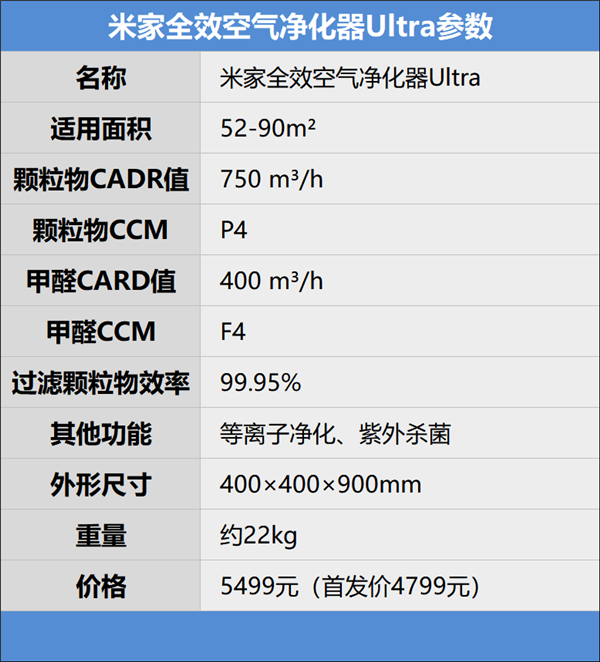 ️我们先来看一下米家全效空气净化器Ultra的详细参数