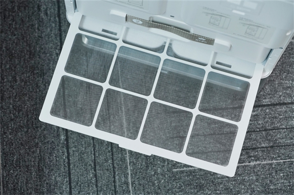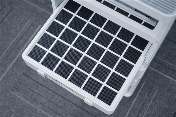 第一层是初效滤网,主要用于拦截毛发、柳絮、皮屑、棉絮等粗颗粒物,如果脏了也可以水洗,循环使用。