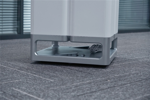 净化器下方配有驻停压杆,当我们不需要净化器移动时,压下压杆令净化器保持驻立状态。
