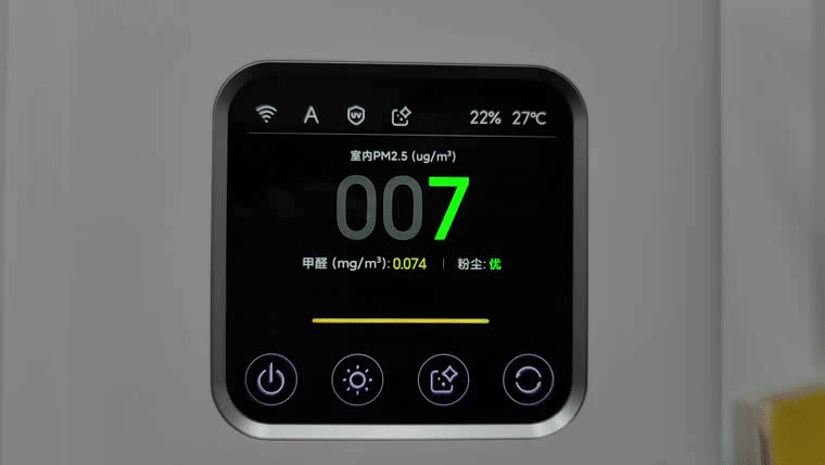 值得一提的是,在米家全效空气净化器Ultra的显示屏中集成了光线传感器,如果检测到环境处于较暗状态下,屏幕自动降低亮度,避免高亮度对我们的眼睛造成刺激,这项功能对于老人与小孩来说真的是无微不至。