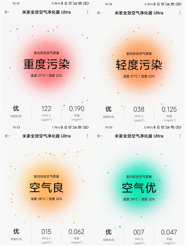 ️三、颗粒物净化测试:严重污染到优等水平 只需要15分钟