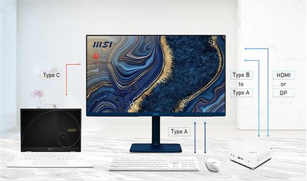 微星MD272QP Ultramarine的对比度高达1000:1,雾面屏即使在光线复杂的环境下,纯黑画面表现相当完美。屏幕的亮度高达300nit,具备物理8bit色深,95%的sRGB色域,内置多套色彩模式,色彩表现第一眼就能让你惊艳。