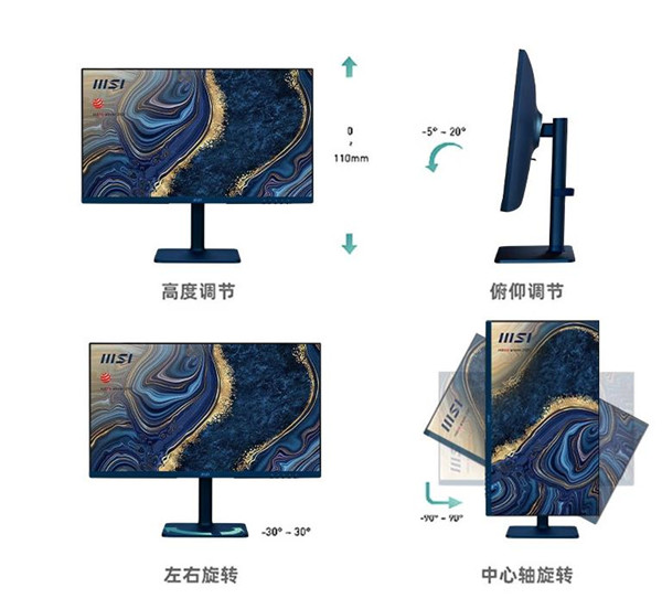 总结,微星MD272QP显示器有护眼功能,还可以旋转屏幕,升降底座,屏幕色彩也很丰富。