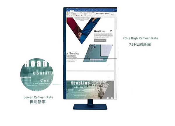 配合支架的旋转功能,显示器还能转换成竖屏进行使用,同样可以进行分屏显示,不管是阅读资料还是查看报表,都付变的更加的便利,对于日常办公非常的有帮助。