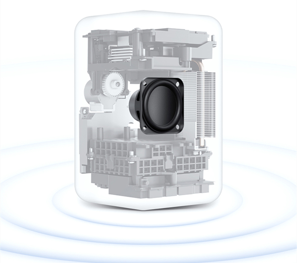 小米投影仪mini机身内置8W大功率、全频高保真超大音箱,匹配WANOS全景声虚拟声场技术,让小米投影仪mini高音清透,低音澎湃,立体空间感更强。