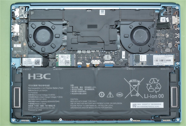 电池的容量是70Wh,在14寸轻薄本中算是非常大的容量,根据新华三的官方数据,它可以坚持8小时的本地视频续航时间。