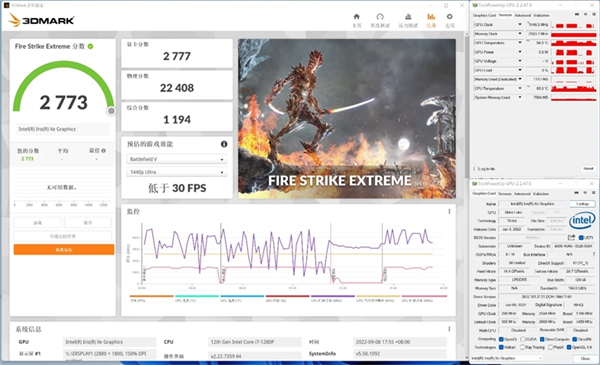 实测3DMark图形分数2777.而CPU的物理分数也有22408.