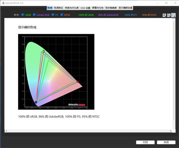 实测拥有100%的sRGB色域覆盖、96%的AdobeRGB色域覆盖、100%的DCI-P3色域覆盖和95%的NTSC色域覆盖。