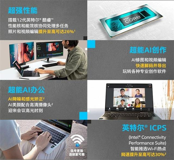 其中处理器采用的是第12代英特尔酷睿专门调校加强性能的Alder Lake 超低功耗处理器,能够在相同主频情况下实现更低的功耗。同时,搭载全新英特尔锐炬 Xe显卡,在创作、游戏、娱乐等场景下,轻松实现高分辨率的图像显示效果和飞快的运行处理速度。