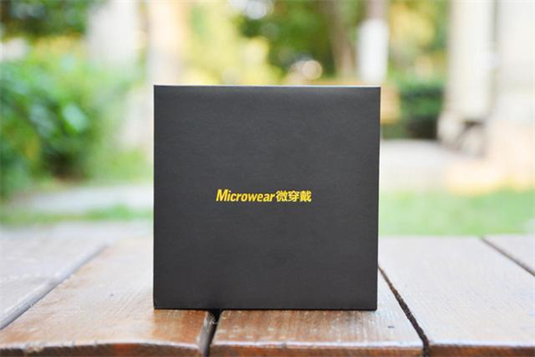 外包装这一块,正面印有“Microwear微穿戴字样”,黑底搭配黄色字迹,让品牌logo格外显眼。