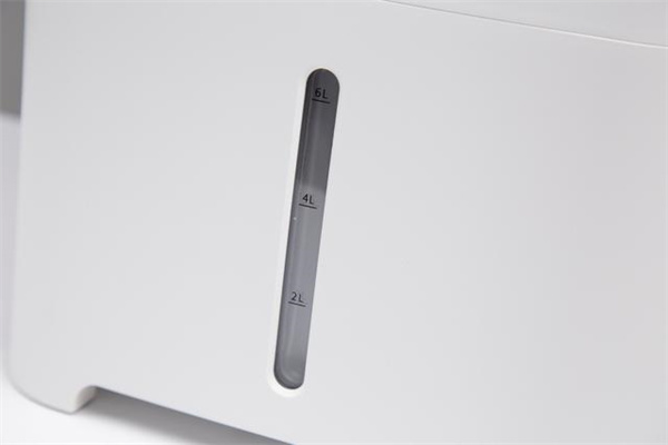 最下面就是水箱,同时在正面还有一个刻度观察窗,可以看到目前水箱内的水含量,最大可以容纳6L水。经过我的测试,把水装满在全天开启的状态下,基本是可以用上一整天的,如果只是夜里开,两天装一次水也是没问题的。