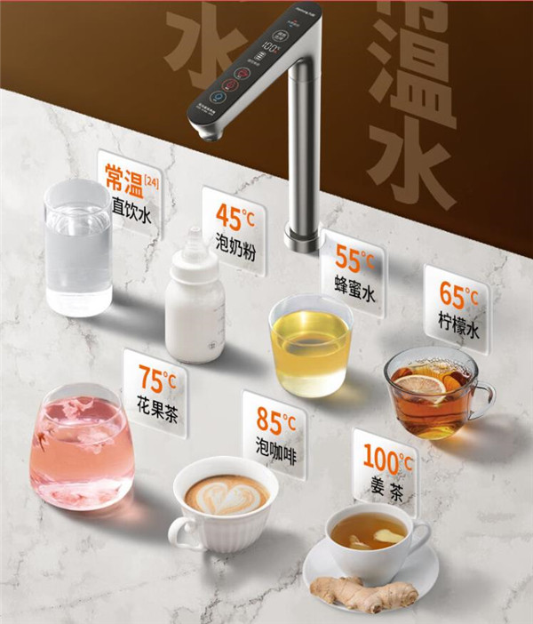 这款二代版本的太空热小净支持7挡温度可供选择,泡杯茶、冲杯咖啡、泡个泡面、泡杯柠檬水等等都可以,通过龙头的触控面板可直接实现操作,即便是家中有老人也能轻松操作。