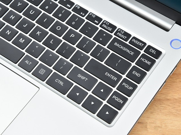 键帽字体的印刷也很走心,字号比普通笔记本要更大一些,颇有80、90年代老电脑的感觉。键盘按键手感非常利落,弹性较大,键程偏长,回弹反馈极为明确,打字时的敲击感明显。笔者给几位程序员同事使用过后,普遍对键盘手感给出了好评的反馈。此外,其键盘还设计了白色背光,通过Fn+ESC键可以进行2级亮度调节。