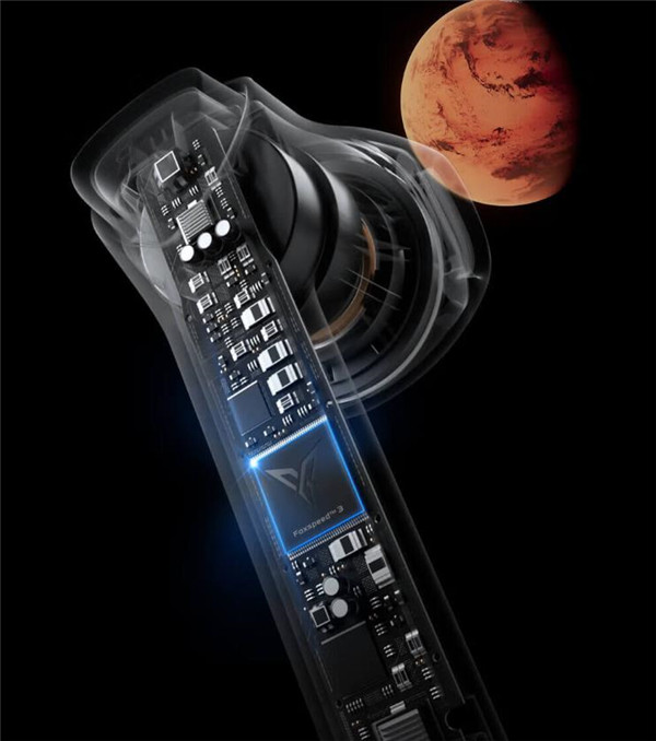 飞智X1在延续赛博朋克风格的同时,以太空和陨石为灵感,设计太空银三角能量柱嵌入耳机,添加未来科技风范,联名定制礼盒采用全新设计,外包装准确还原火星地貌。