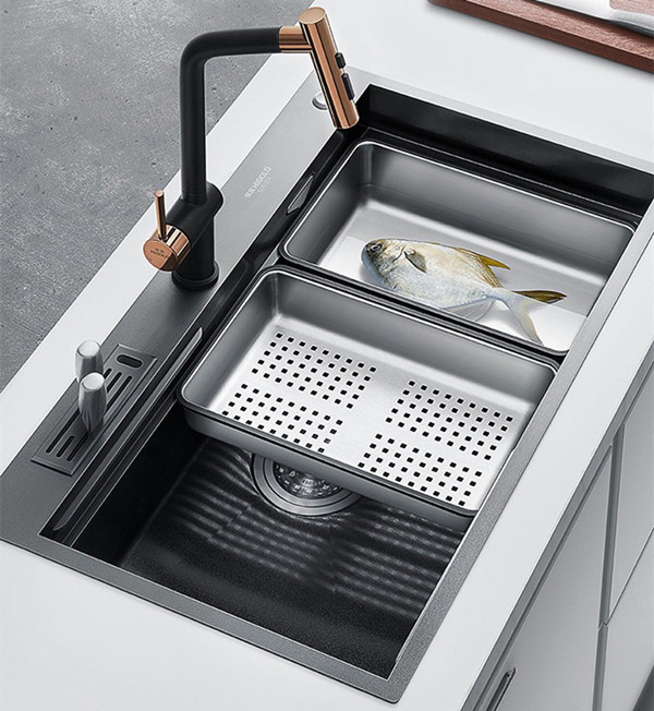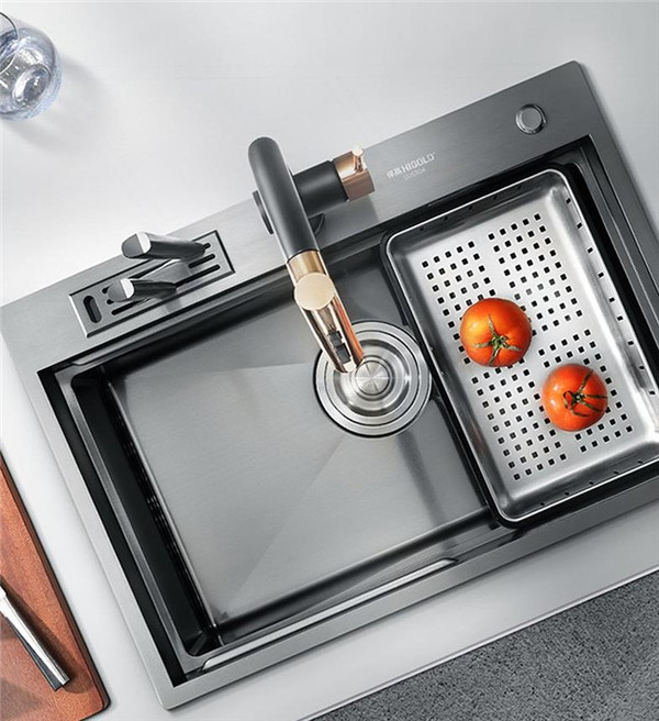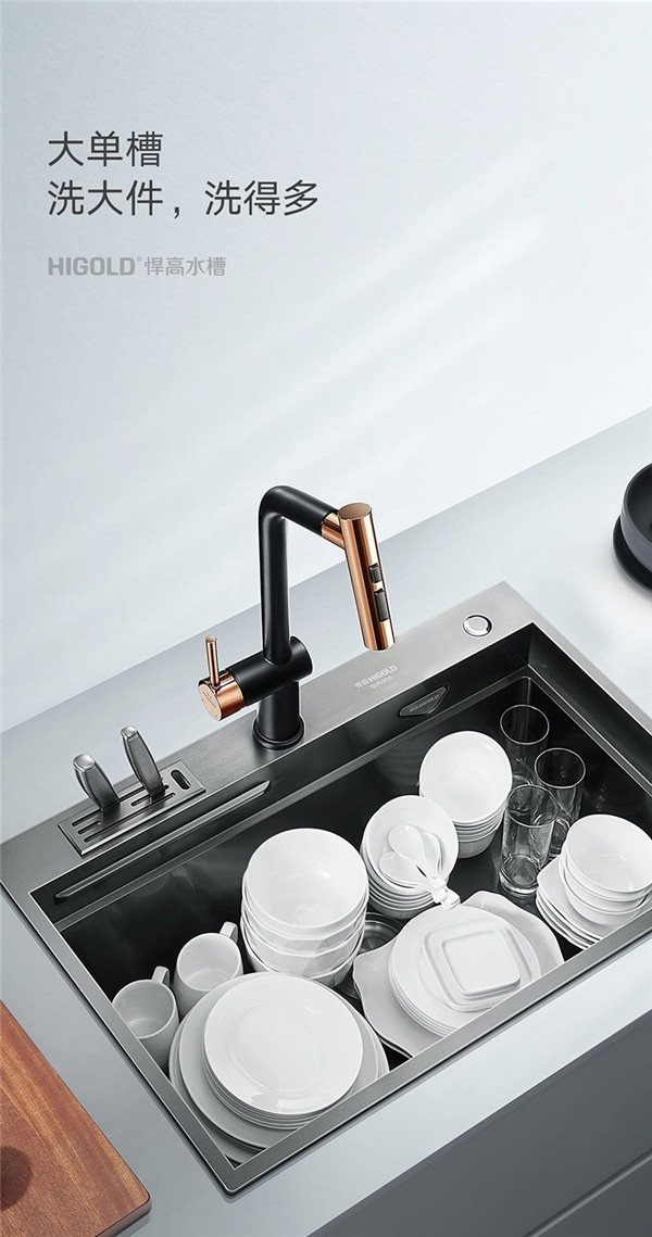 很多老式的设计都是双水槽,使用起来很紧凑,洗个锅都放不下去,现在都使用了单水槽,下面给大家推荐一款实用的单水槽——悍高双阶梯多功能纳米水槽,让我们一起来看看吧~
