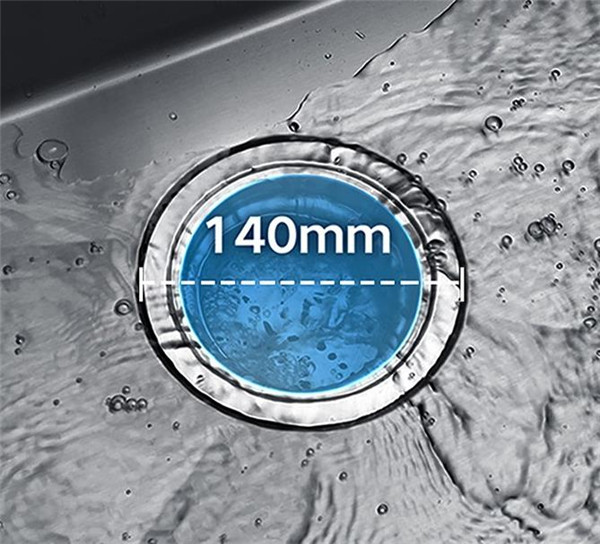 排水方面封水盖、提笼以及外壳也都做到了304同料打造,提笼的容积很可观,可以良好的过滤废水种的残渣,同时清理也很简单。下水孔的直径达到了140mm,这样排水也就更畅快了。