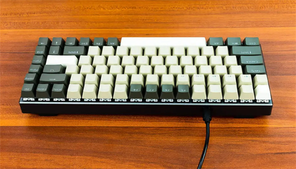 打开了灯效以后,完全不一样的感觉。但无论如何,这款键盘都是采用84键紧凑型键盘布局,键线分离设计,大大减少了桌面空间占用,携带方便,给人一种简约有序的感觉。超窄的铝合金边框,采用喷砂氧化工艺CNC切边,键身前有品牌V系列Logo,还是挺简约醒目的。键盘整体线条感明晰,简约大方,充满科技质感,并且坚固耐用,让人爱不释手。