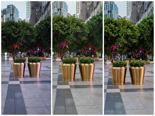 华为Mate50 Pro主摄画质较另外两款采用超大底基本并无明显区别,石板地面的纹路细节得到了很好的保留。注意看花坛后方的树叶,华为Mate40 Pro+和小米12S Ultra相当一部分细节被黑色覆盖,华为Mate50 Pro则显示了三者中最多的内容,唯一瑕疵在于锐化有些用力过猛,让画面看起来有点不干净。白天主摄部分,三者基本相当。