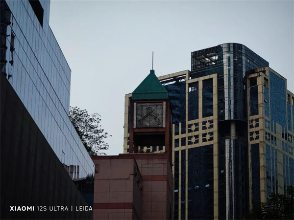 我截取了边缘“中国建设银行”字样,可以看到华为Mate50 Pro截取字样非常清楚,细节保留不错,但楼体表面出现一点的画质下降,华为Mate40 Pro+情况与其类似。小米12S Ultra画质偏肉,但毕竟4800万像素的超广角,楼体细节相对丰富。