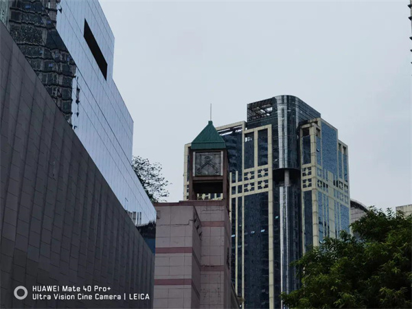 华为Mate50 Pro同一部分依然十分清晰,画质与华为Mate40 Pro+的10倍光学变焦相当,但注意看建筑顶部的绿色尖顶边缘,后者已经出现了一些涂抹,华为Mate50 Pro则要好很多,但是一些细节还是稍逊于华为Mate40 Pro+的10倍光学。