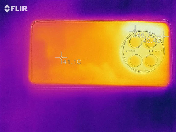感觉像是华为给须弥地区做了专门的优化,但是老地图没有。除此之外,华为Mate50 Pro运行《原神》的功耗很低,都在5W左右,没有给足够的功耗也是是游戏体验欠佳的原因之一。测完之后,机身最高温度46.7℃,摄像头的一侧,中框温度也在46℃左右。