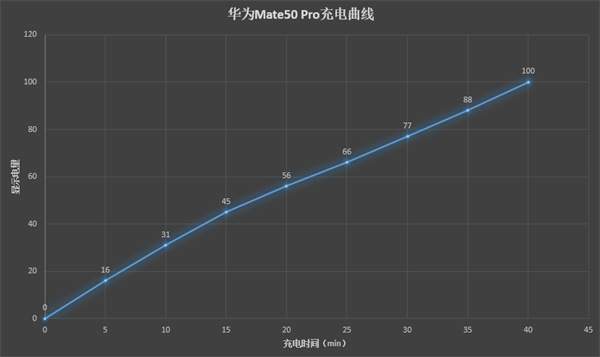 在其他配置上,华为Mate50 Pro内置4700mAh电池,支持66W超级快充和50W无线充电。虽说还是66W方案,但是充电速度比之前快了很多,从0%到100%完全充满耗时40分钟。作为对比,前代Mate40系列搭配66W快充,充电需要近一个小时。