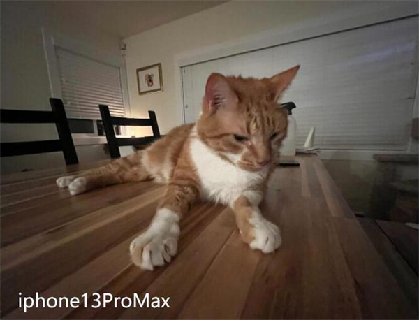 以上这组对比图上边是iPhone13ProMax拍摄,下边是iPhone14ProMax。很明显iPhone14ProMax拍摄的猫咪毛发细节相对来说非常丰富,锐化程度比较高。而iPhone13ProMax微距拍摄聚焦效果没有那么好,猫咪的毛发看上去略显模糊,差距显而易见。