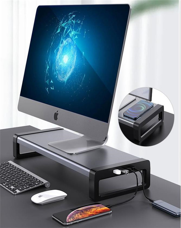 奥睿科HSQ-02H铝合金增高支架,在普通支架的基础上,增加了HUB功能,配备的4个USB3.0接口,可以自由扩展,能够同时使用键盘鼠标,用起来更为灵活,实用性超强。