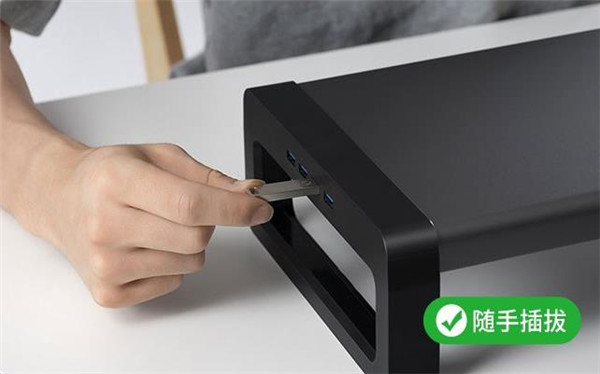 奥睿科HSQ-02H铝合金增高支架的细节设计也是非常贴心的,对于上班族尤为友好,它的USB接口都在侧面,插拔方便顺手,无需弯腰,而且还不影响整体美观度,看起来简约大方,时尚高级,颇具美感。