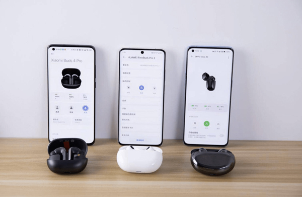 (左:小米Buds 4 Pro;中:华为FreeBuds Pro 2 ;右:OPPO Enco X2)