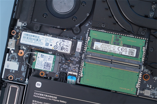 中间的内存采用的是标准的SO-DIMM内存,由两根8GB DDR5-4800组成了16GB双通道。