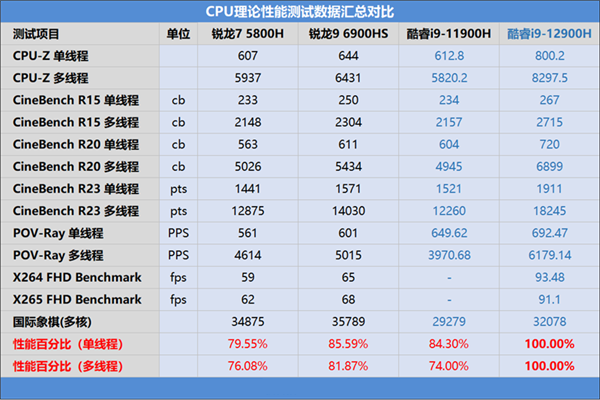 ️二、CPU性能:12900H多线程领先6900HS约22.1%