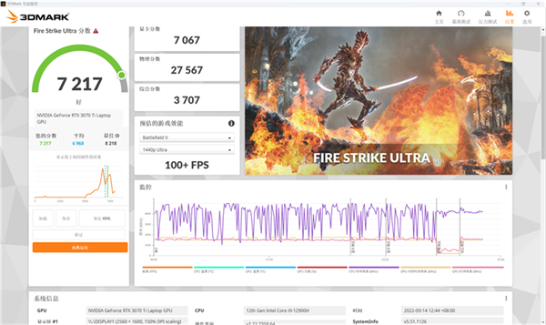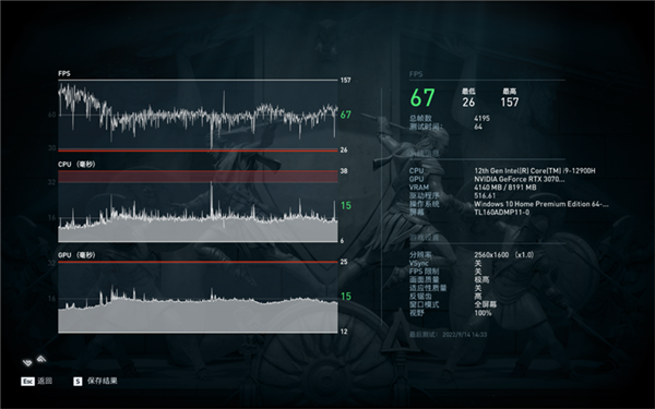 ️三、图形测试:3070 Ti独显可畅玩2.5K分辨率+最高画质3A大作