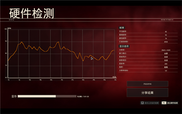 《孤岛危机5》在2.5K分辨率+极高画质下,平均帧率为82 FPS。