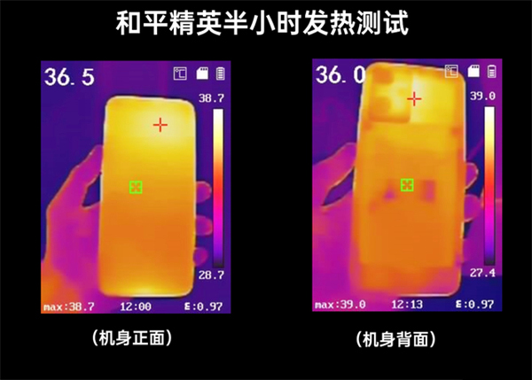 室内温度29.3℃,和平精英只能打开超高的40帧率,一局下来都基本上在40帧左右,平均帧率为39.8,最热的地方是摄像头附近,39℃,屏幕最高是38.7,王者荣耀可以直接开60帧,一局下来也基本上在60,平均帧率为59.6,最高温度是摄像头39.2度,屏幕38.8℃。这款手机打热门游戏是可以的,但要高帧率就不可能了!但是发热控制倒是挺好。